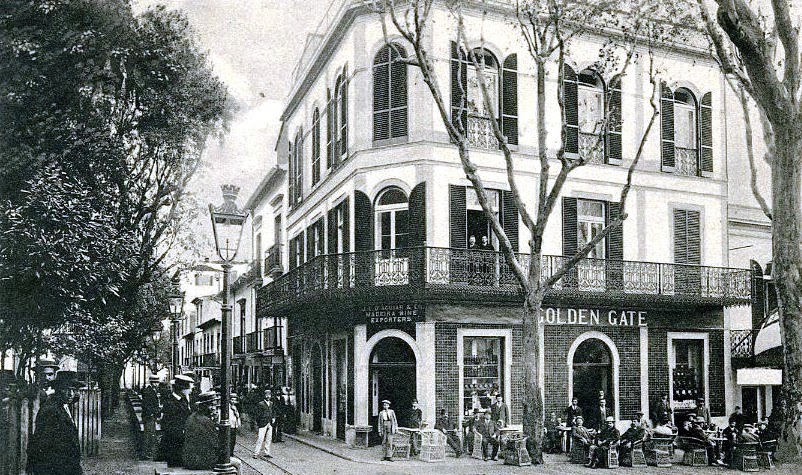 Café "Golden Gate" no Funchal, a "Esquina do Mundo", assim classificou o escritor face ao movimento de estrangeiros que frequentavam este lugar.